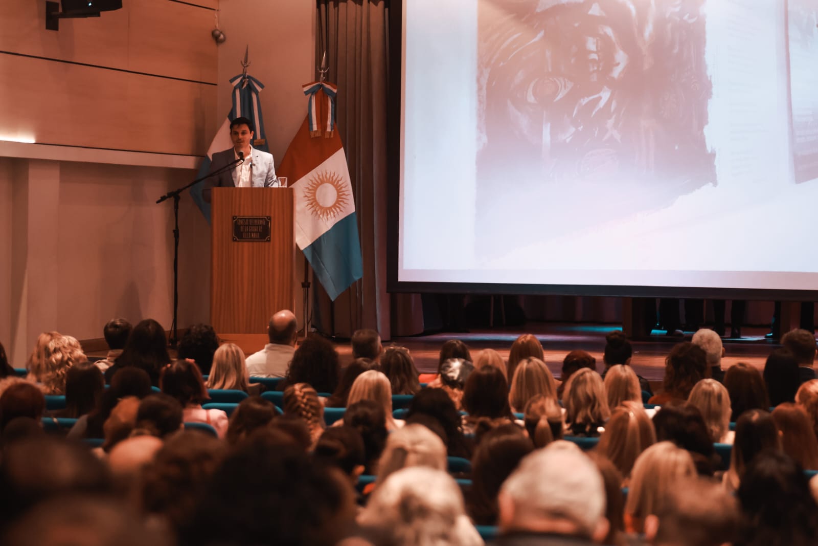 El evento también contó con actuaciones musicales de las violinistas locales Luisina Broggi Lloret y Cecilia Castelli, así como la interpretación del Himno Nacional por la artista María Paz Canelo.