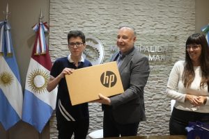 Como estímulo académico, el municipio entregó dispositivos electrónicos a ambos estudiantes.