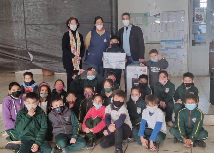 El funcionario se reunió con las autoridades de la escuela, y con los niños, a quienes entregó el equipo de audio ganado el pasado domingo por Gael Amadeo Abregú en marco del ciclo Esencia Patria, que invitaba a los chicos de la ciudad a realizar dibujos para participar del sorteo por el equipo de audio para las escuelas.