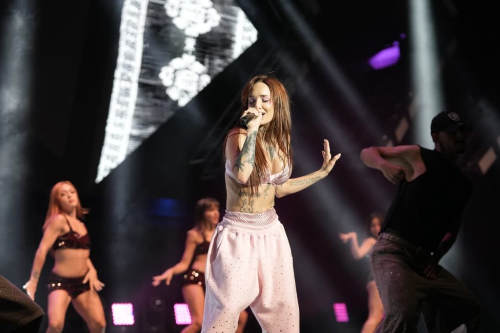 La Joaqui, tal como se había anunciado, fue la encargada de abrir la segunda noche del Festival de Peñas de Villa María 2026. Aunque el Anfi pareció no encenderse del todo, el público siguió expectante su presentación tras repasar algunos de sus hits tales como “Butakera”, “Tu amor” y “Dos Besitos”, entre otros, con un público adolescente y predominantemente joven.