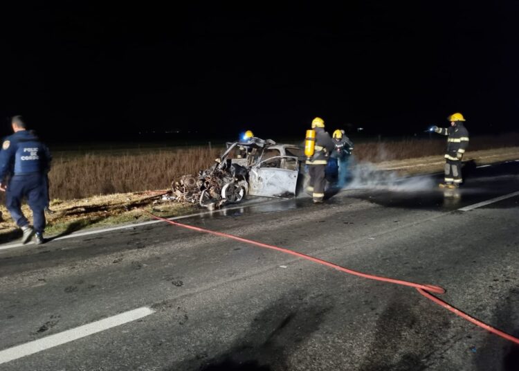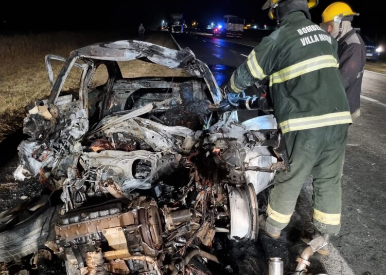 Según informaron desde la guardia de bomberos, un automóvil impactó la parte trasera de un camión lechero, se prendió fuego y sus ocupantes murieron calcinados. Los rodados circulaban sentido Las Mojarras – Villa María.