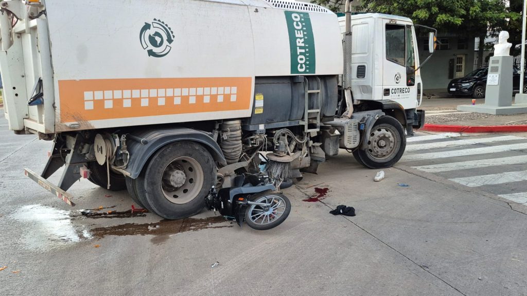Esta mañana, a las 6:22 se produjo una colisión en Bv. Italia y Naciones Unidas, en la que participaron un camión Iveco que barre las calles y una moto Guerrero.
